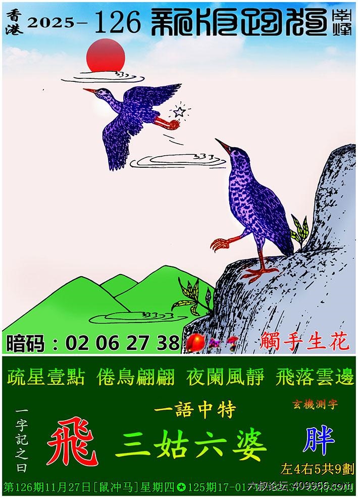 126期新版跑狗一字記之曰:【飛】 玄機測字:《胖》 一語中特:三姑六婆