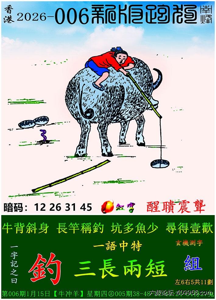 006期新版跑狗一字記之曰:【釣】 玄機測字:《組》 一語中特:三長兩短