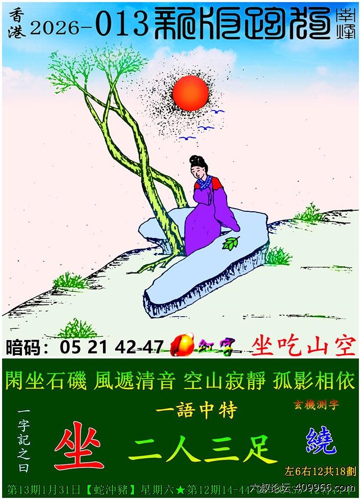 013期跑狗一字記之曰:【坐】